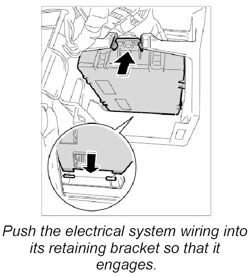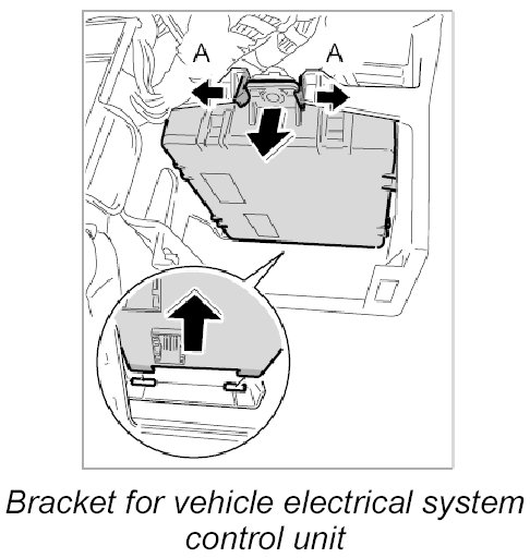 2. Push vehicle electrical system control unit upwards into the holder. It must engage properly. Make sure the electrical leads are not pinched.
