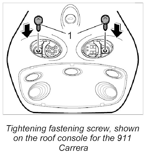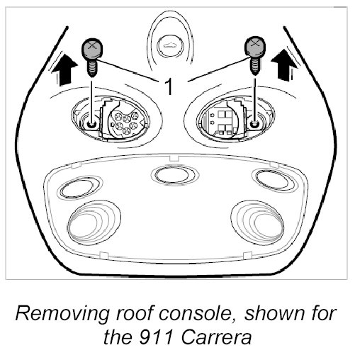 1. Unclip the two covers on the roof console and unscrew both fastening screws -1-.