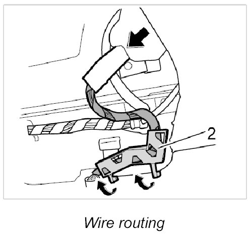 8. Engage holder -2- for the electric line and push line in behind the roof liner.