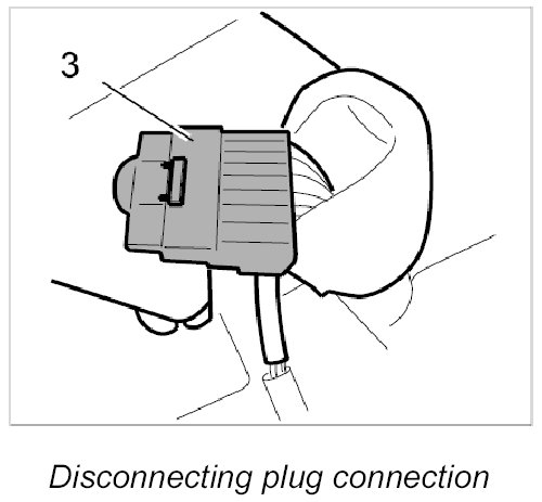 6. Carefully pull the plug connection -3- out of the holder and pull it apart.