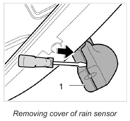 4. Carefully unclip the cover -1- from the rain sensor from above using a narrow screwdriver.