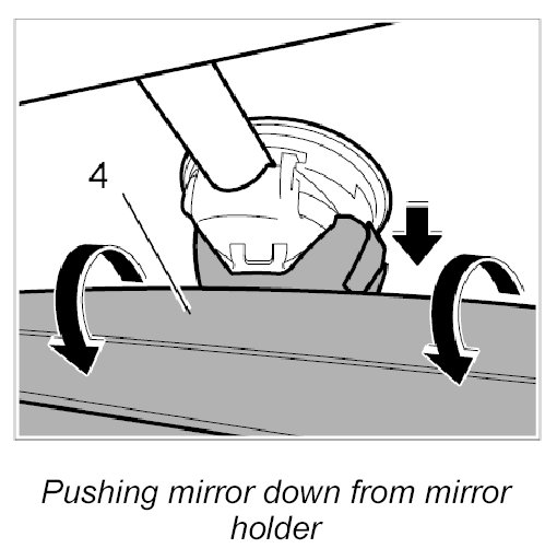 7. Fold mirror downwards -4- and push down from the front windscreen bracket.