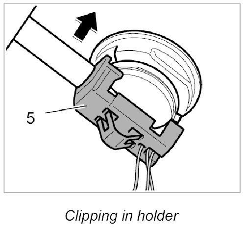 2. Push and press holder -5- onto the rain sensor until it engages.