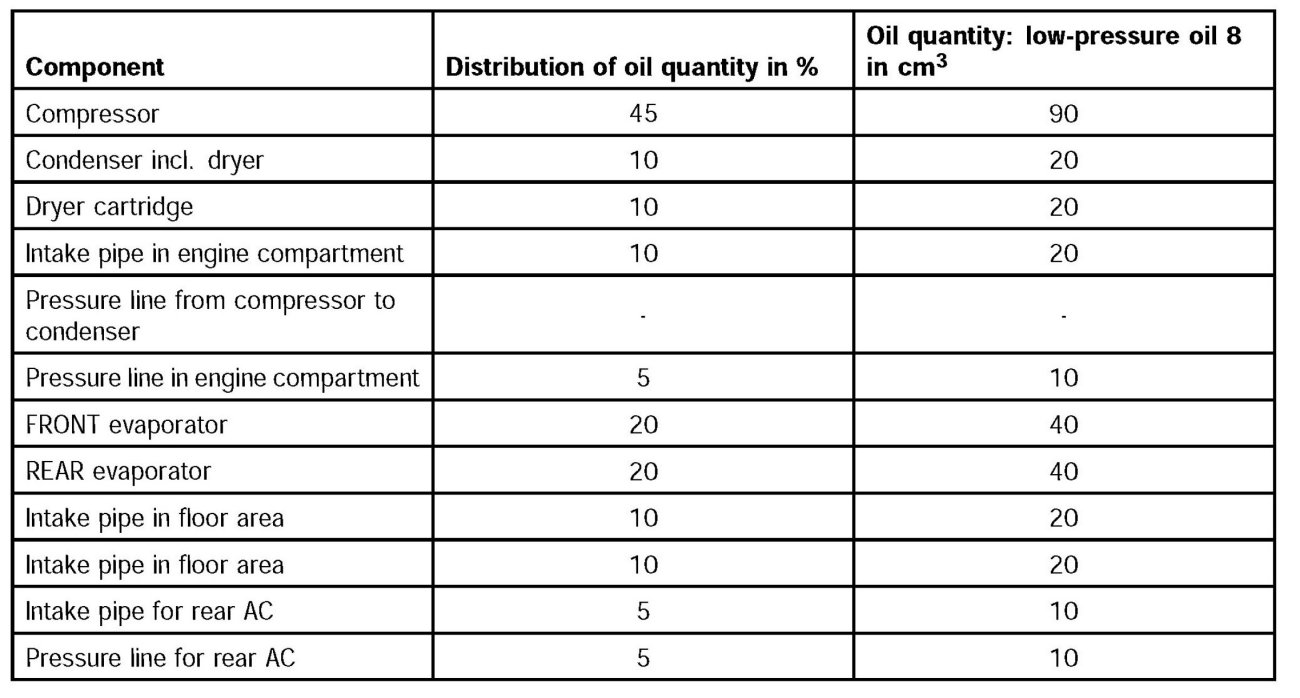 Basic vehicle: Distribution of oil quantity in the individual air-conditioning components