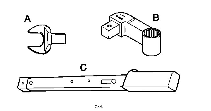 ^ C- - Torque wrench 00000 covering the range between 70 Nm (52 ft. lbs.) and 188 Nm (133 ft. lbs.). Commercially available; use in combination with tools A and B.