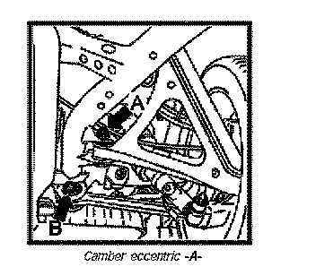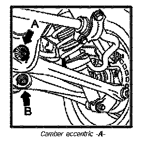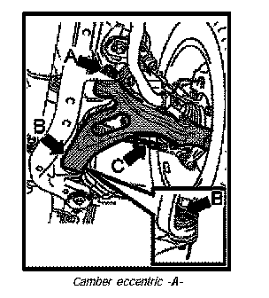Camber is adjusted at camber eccentric -A-.
