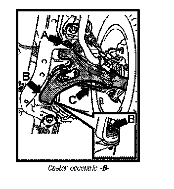 Specified tightening torque for fastening nut to caster eccentric -B-= 133 ft. lbs.