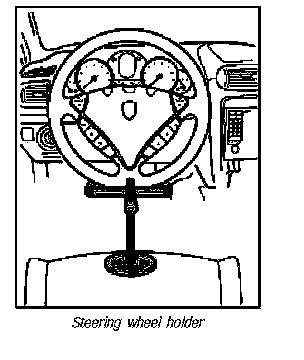 7. Clamp steering wheel in centre position with steering wheel holder. Steering wheel holder