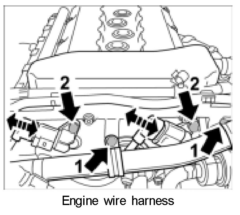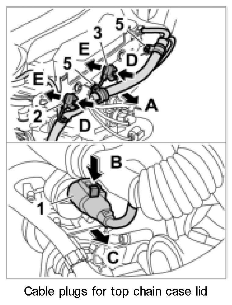 2. Fit engine wire harness to top chain case lid -1-.