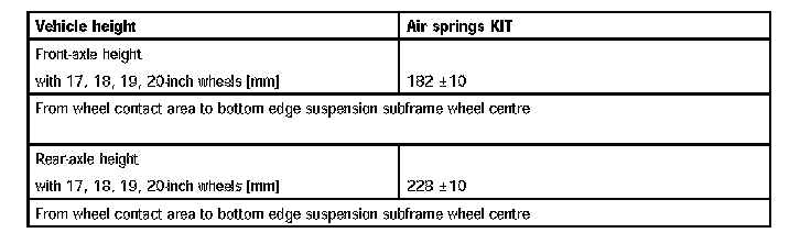 Note: The >> Air springs KIT << table column only shows the wheel alignment values that are different from the >> air springs << wheel alignment values.