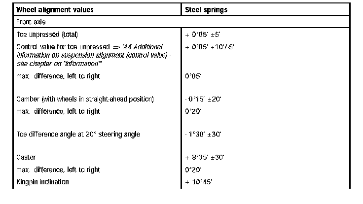 See requirements for suspension alignment. ->44 Additional information on suspension alignment (control value) - see section on Information'