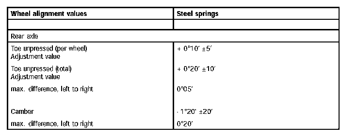 Wheel alignment values (steel springs)