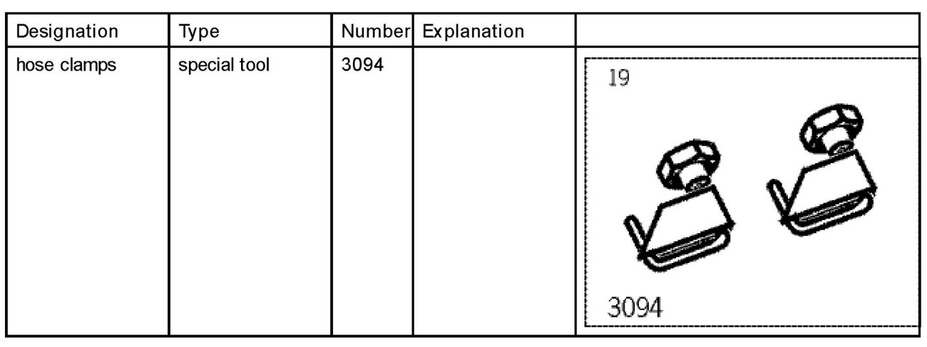 16. Disconnect the two hoses with the hose clamps 3094.