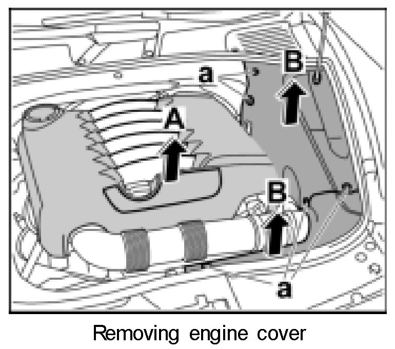 1. Remove engine cover -arrow A-.