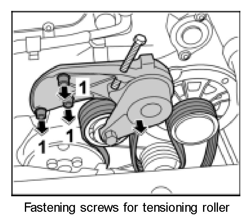 - Only screw the pressure screw in far enough to remove the drive belt. Otherwise, the tensioning roller housing may be damaged.