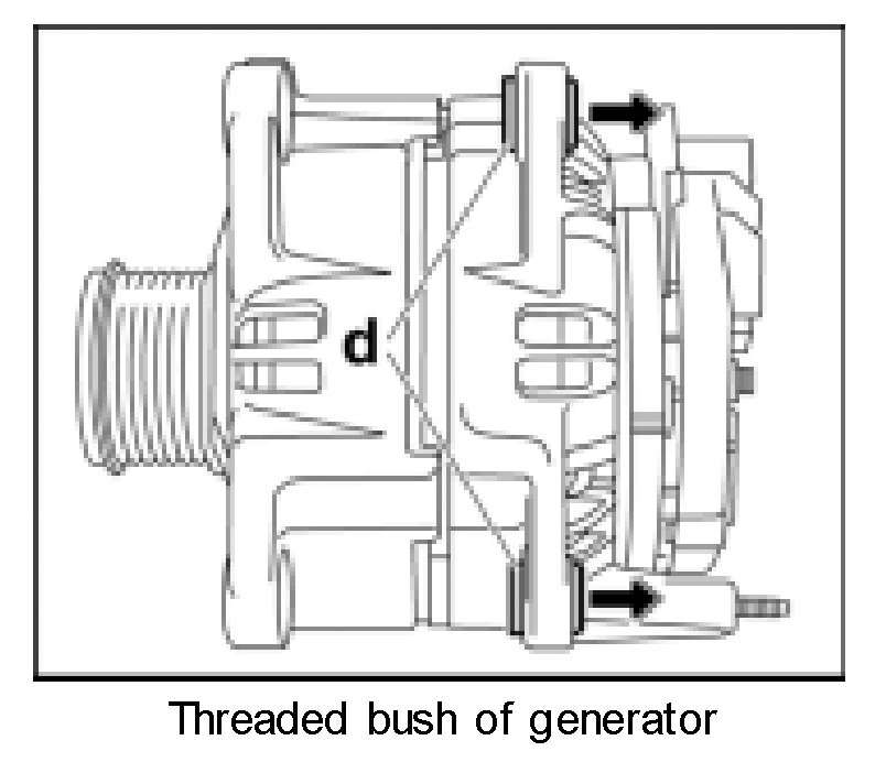 - Before installing the generator, push the threaded bush -d- out by approx. 4 mm.