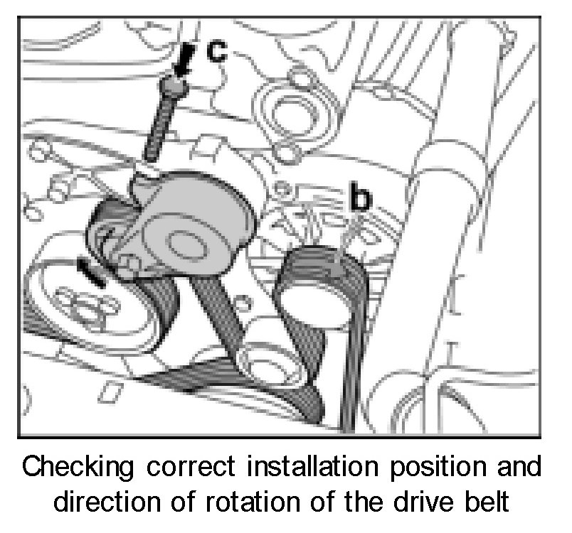 9. Check installation position and direction of rotation -b- of the drive belt.