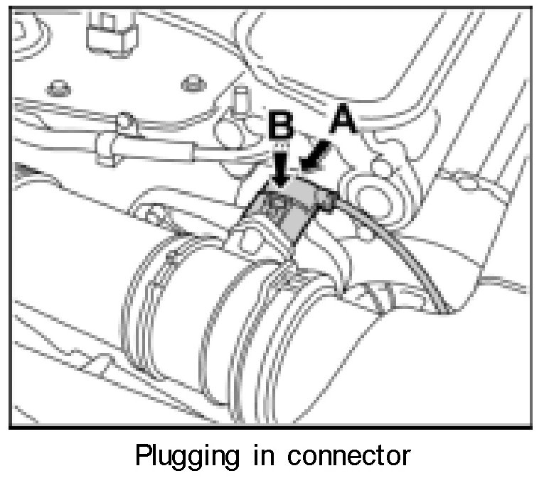 16. Push on the connector -arrow A- until the locking tab -arrow B- is felt to engage.
