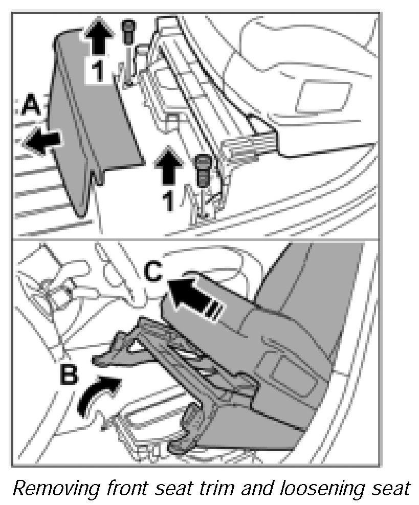 2. Detach front seat trim -arrow A- towards the front.