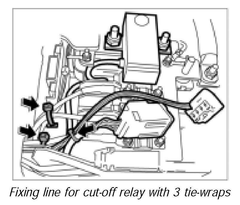 3. Fix line for cut-off relay with 3 tie-wraps.