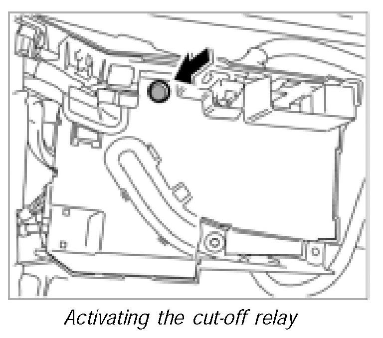 - The cut-off relay is activated. The cut-off relay must be activated again.