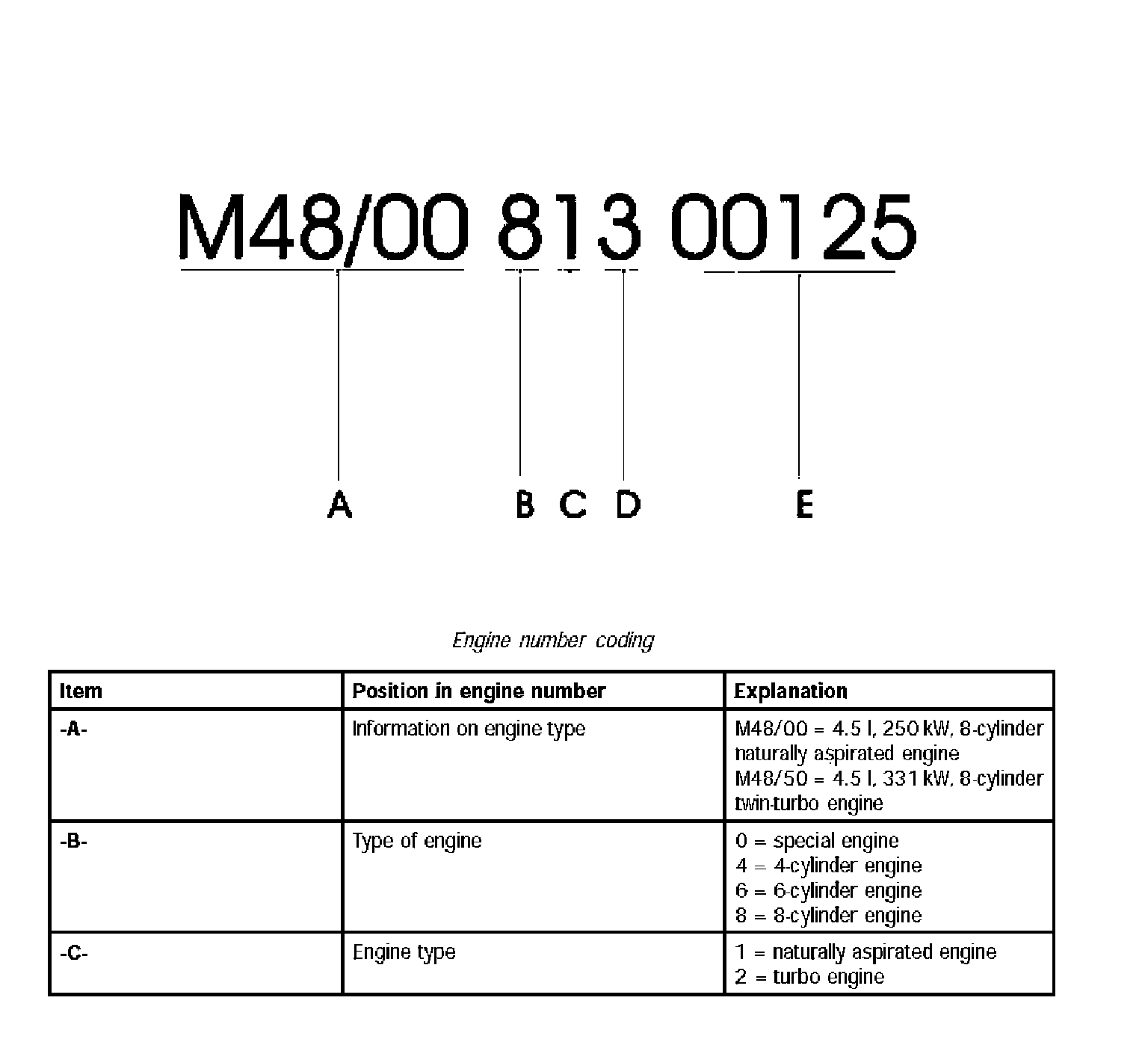 Position and Coding of the Engine Number