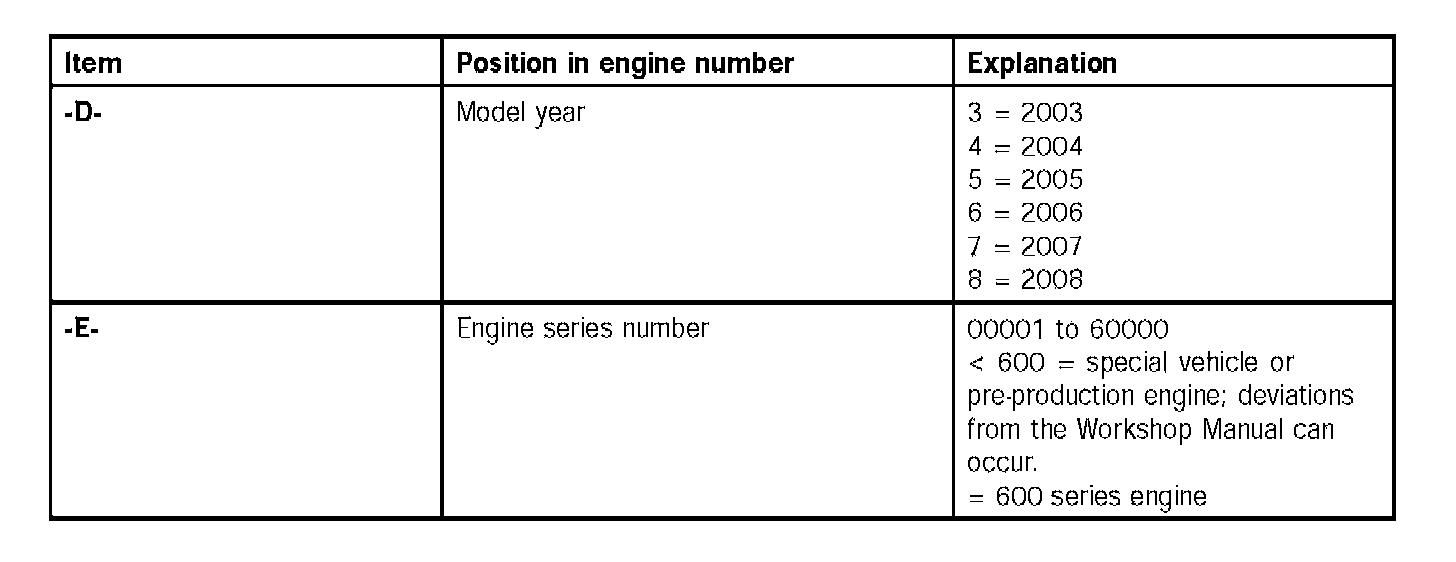 Position and coding of the engine numberThe engine number is located on the underside of the crankcase on cylinder bank 5 - 8. Once the underbody panel is removed, the engine number is visible on the left.