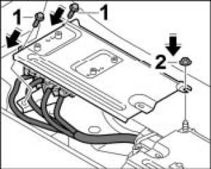 4. Turn the control module holder and push it in under the fastening nut -2-.