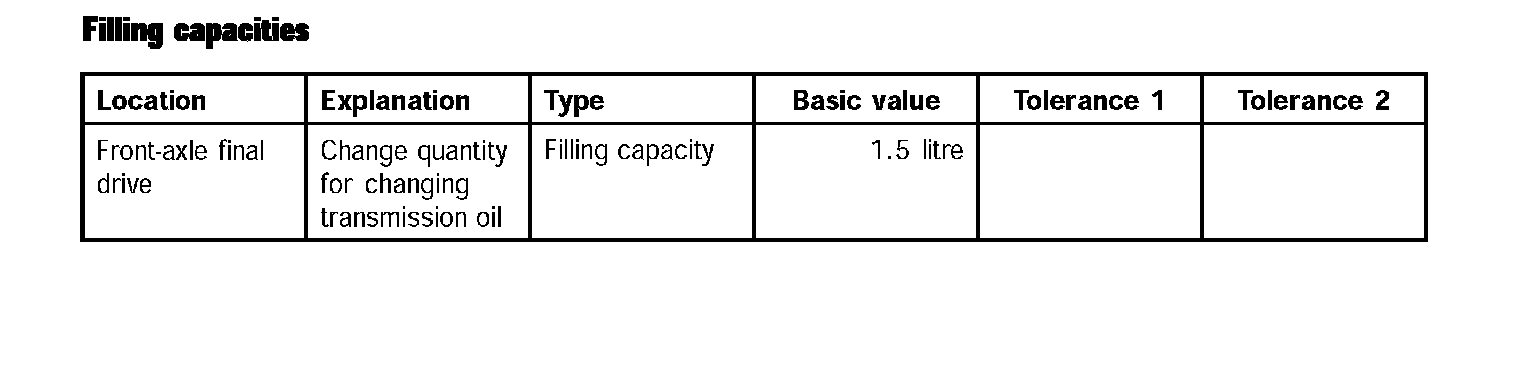 Filling capacities