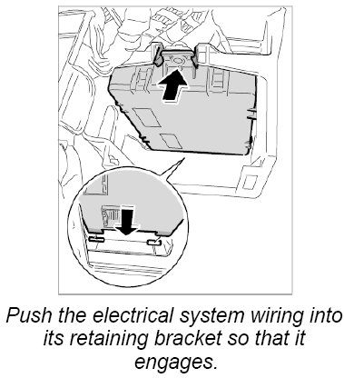 2. Push vehicle electrical system control unit upwards into the holder. It must engage properly. Make sure the electrical leads are not pinched.
