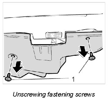 4. Unscrew both plastic screws -1- for the cover in the passenger's footwell and remove the cover downwards.