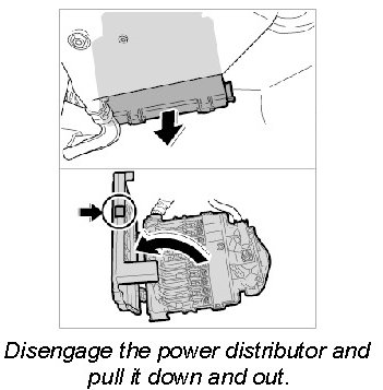 5. Pull the power distributor away from the firewall and lower it down into the passenger's footwell.