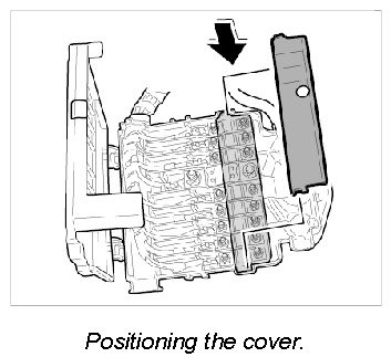 6. Slide the power distributor upwards between the heater/air-conditioning unit and the bulkhead, and engage in the bulkhead.