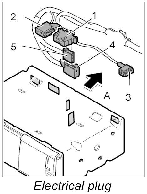 2. Unlock the electrical plug -1, 2, 3- on the navigation unit and remove the navigation unit with holder.