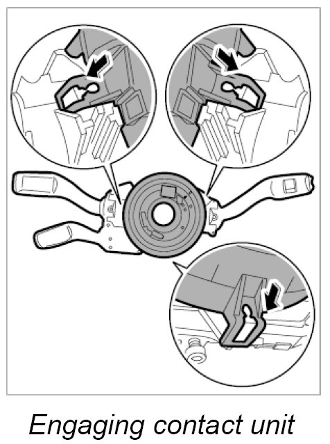 4.1. Position airbag contact unit and press onto the steering column switch until the three tabs are felt to engage.