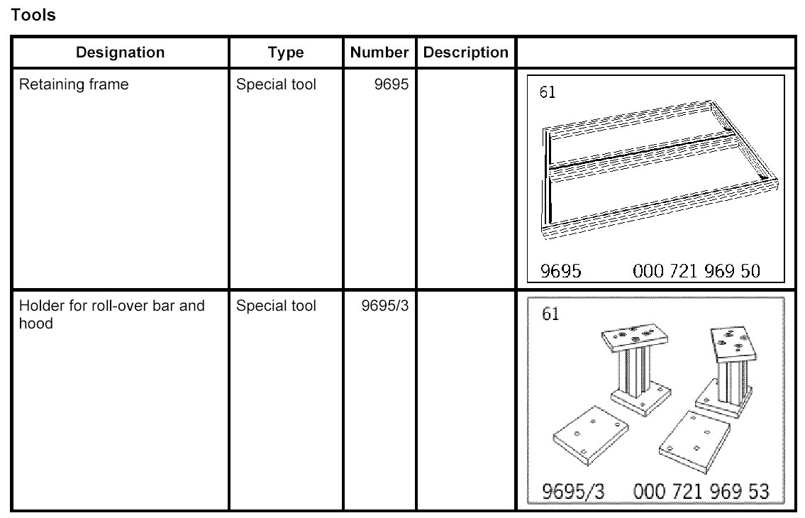 - Only work on the removed roll-over bar when the roll-over bar is mounted on the assembly fixture.