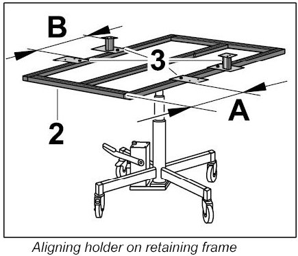 1.3. Align holder -3- on retaining frame -2- with dimension A: 600 mm and the dimension B: 315 mm ± 5 mm.