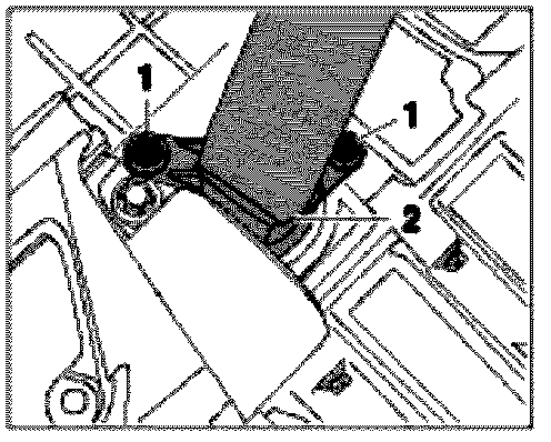49. Remove engine lifting bracket -1- by unscrewing the two Torx screws (M6 x 16) -2-.