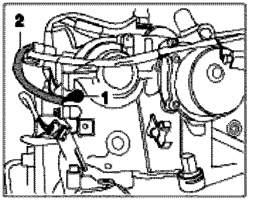 28. Remove knock sensors -2- by unscrewing one Torx screw (M8 x 35) respectively -1-. Mark the position of the electric connection for re-installation.