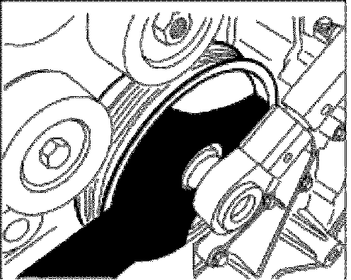 36. Remove crankshaft belt pulley by countering the belt pulley with special tool retaining device 9593 and screwing out central screw (M16 x 60).
