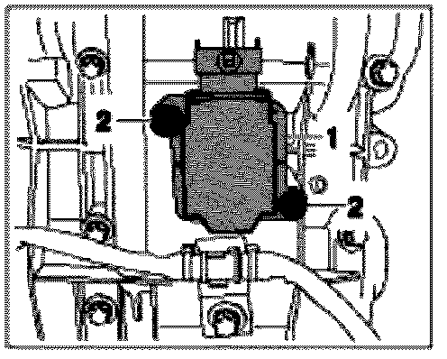 18. Remove power-steering pump support -2- by unscrewing the four Torx screws (M8 x 35) -1-. The power-steering pump support -2- is additionally fixed with roll pins; if necessary use a rubber hammer for the removal.