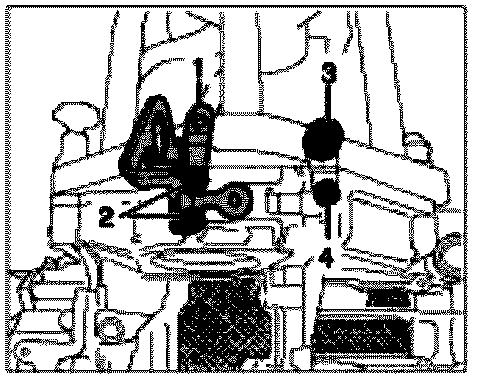 37. Remove engine mountings by unscrewing the three hexagon-head bolts (M10 x 120) and the hexagon-head bolt (M10 x 80). Only the left upper hexagon-head bolt (M10 x 120) can be loosened. The hexagon-head bolt cannot be unscrewed until the engine mounting has been removed.