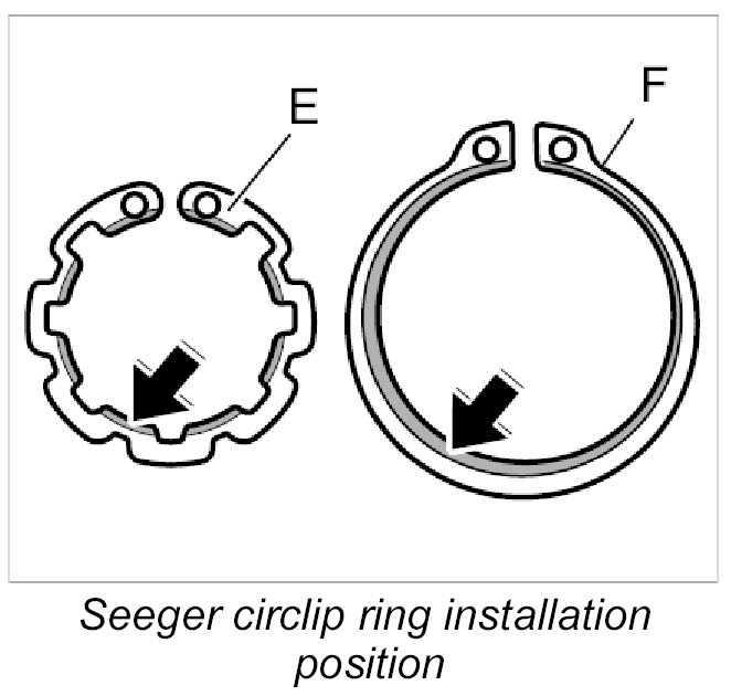 INFORMATION: When installing the Seeger circlip ring, the slanted surface of the Seeger circlip ring must point forward.