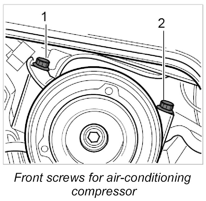 5.2. Screw in front Torx screws for air-conditioning compressor (M8 x 90) -1-and -2-.