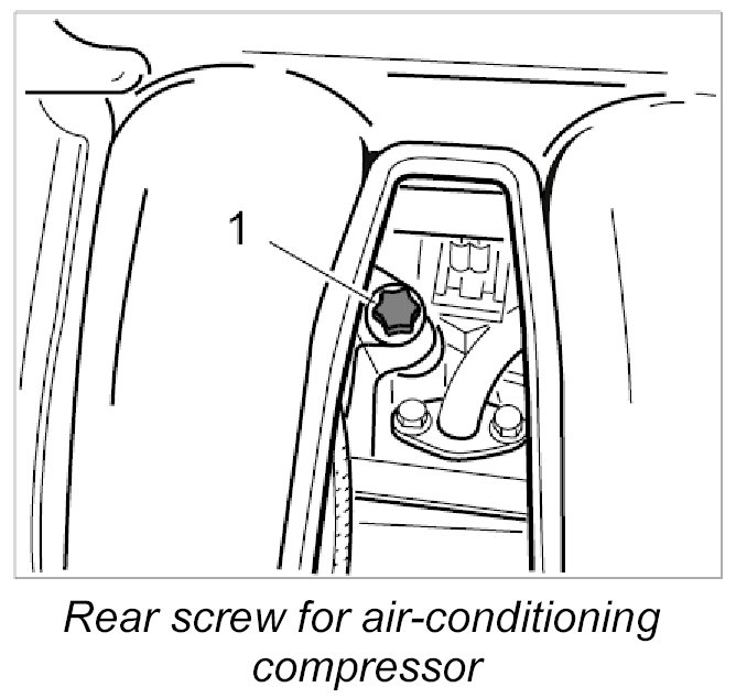6.1. Unscrew rear Torx screw for air-conditioning compressor (M8 x 120) -1- between the pipes of the intake system.
