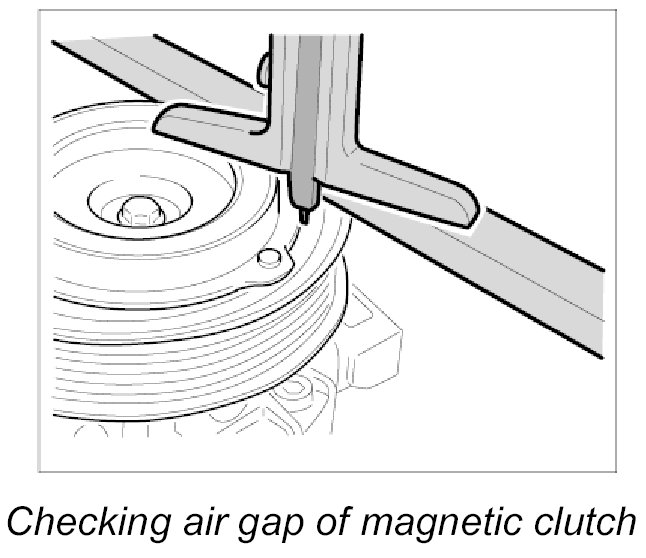 INFORMATION: If a new magnetic clutch is installed, the air gap between pressure plate and pulley must be checked with a depth gauge.