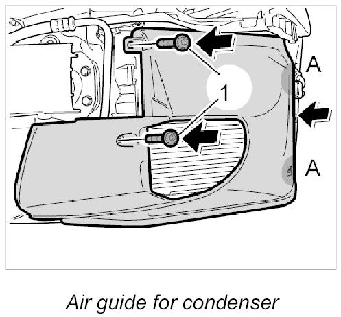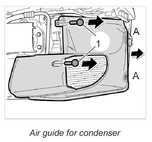 2. Pull the air guide forward and disengage it at the condenser -A-.