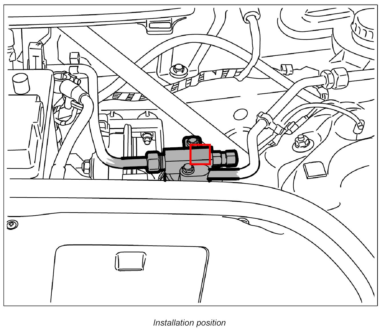 1. Position the fluid tank, connect the refrigerant lines and secure with the fastening screws -2-. - M6: 4.5 ftlb.