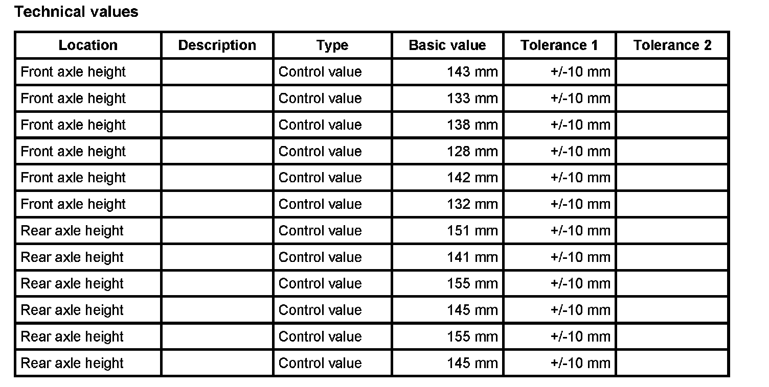 The toe-difference angle value is also influenced by the vehicle height For this reason the measured result must be evaluated accordingly. No action is necessary in the case of small deviations from the toe-difference angle's required value as long as the value to the right and left is almost the same.