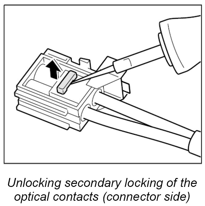 When exchanging the LWL, the optical contacts from the plug connection must be removed.